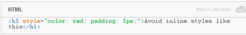 人們經(jīng)常將設(shè)計(jì)風(fēng)格放入線上的HTML里,但是這樣會把語義標(biāo)記和風(fēng)格搞混淆。分離關(guān)注點(diǎn)的同時還消除了緩存和重復(fù)使用CSS的機(jī)會。DRY原理在這里比較適用:如果你想把一個風(fēng)格使用在多個點(diǎn)上,那就需要事先聲明這個風(fēng)格是在一個單獨(dú)的樣式表里的。