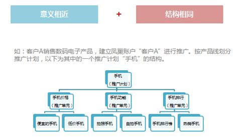 由于一個(gè)單元內(nèi)的關(guān)鍵詞共用創(chuàng)意,因此要保證創(chuàng)意通順,首先需搭建合理的賬戶結(jié)構(gòu)。合理的賬戶結(jié)構(gòu)中,單元搭建遵循兩個(gè)原則: