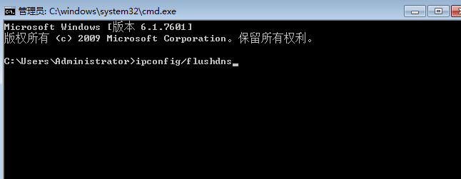 2、清空DNS緩存命令為:ipconfig/flushdns,我們需要在如上圖所示的命令框中輸入此命令,如下圖: