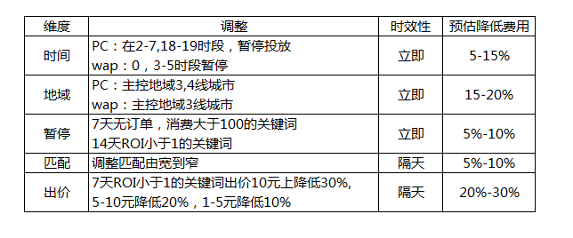 1、產品在 x1 左右,整體預算控制 m1,推廣策略:控本緊縮,暫停低于平均轉化率渠道,同時搜索端在時間段,地域嚴格控制;