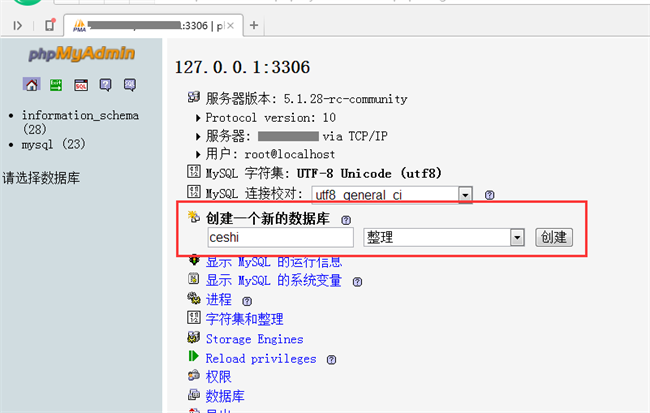 第一步,登錄phpmyadmin圖形管理工具,然后,在MySQL中創(chuàng)建新的數(shù)據(jù)表,這里僅以新建一個數(shù)據(jù)庫ceshi的形式演示。這個比較簡單就不詳細介紹了,直接上圖: